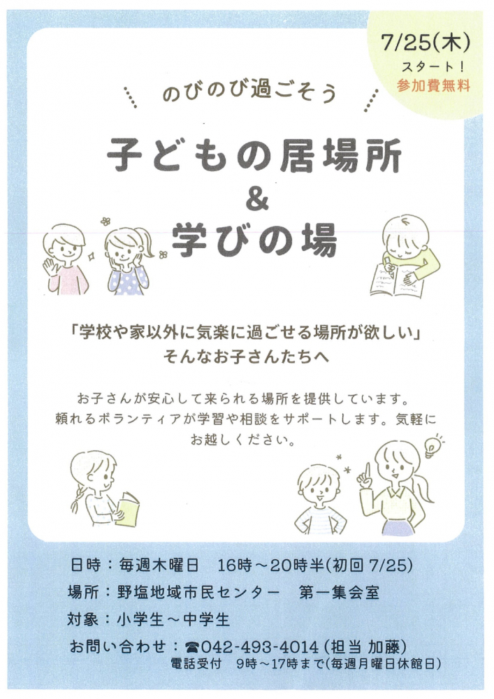 「学校や家以外に気楽に過ごせる場所がほしい」