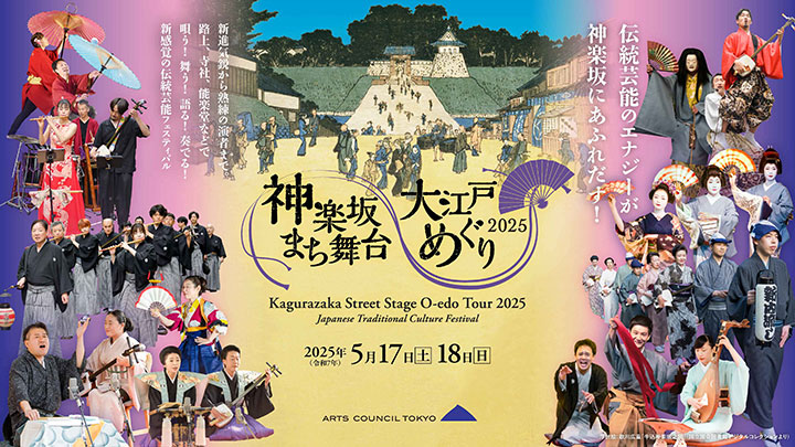 神楽坂のまち全体を舞台にした伝統芸能フェスティバル「神楽坂まち舞台・大江戸めぐり2025」が5月17日(土)・18日(日)に開催されます。