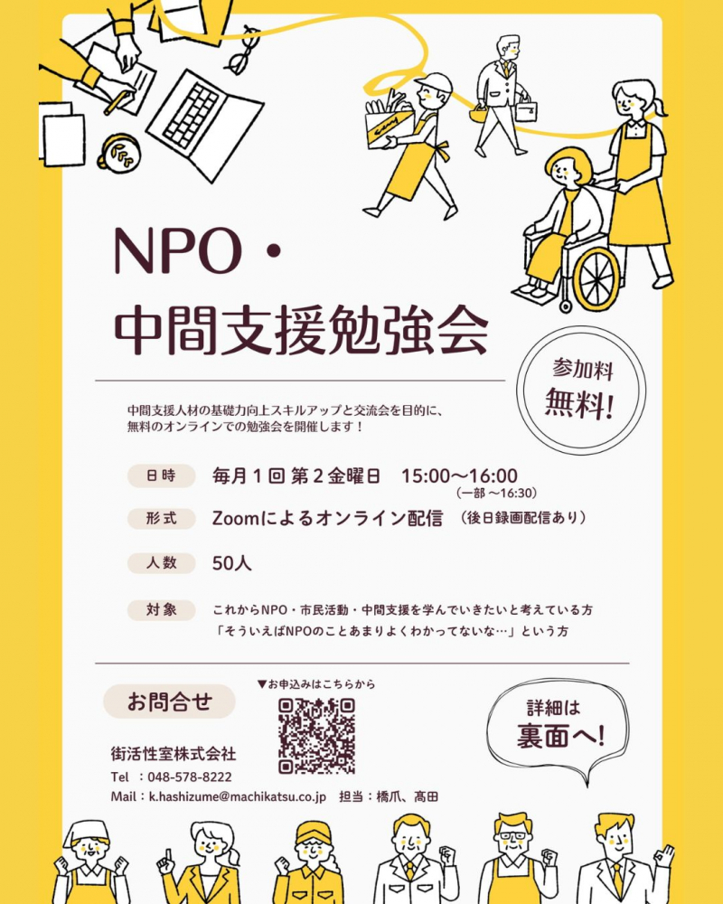 中間支援人材の基礎力向上・スキルアップと交流を目的に、無料のオンラインでの勉強会を開催します♪