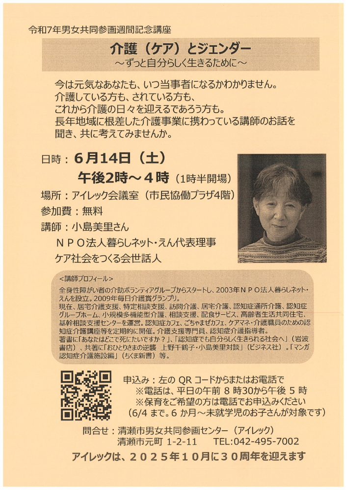 令和7年度男女共同参画週間記念講座「介護(ケア)とジェンダー ~ずっと自分らしく生きるために~」