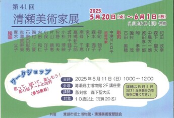 郷土博物館では5月20日より企画展「第41回清瀬美術家展」を開催します。市内在住・在勤の美術家を中心とした清瀬美術家懇話会会員の方々の作品を展示する、毎年恒例の企画展です。