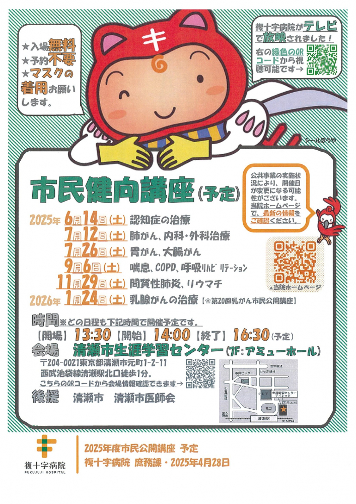 複十字病院 第10回市民健向講座(2025/06/14)開催のお知らせ