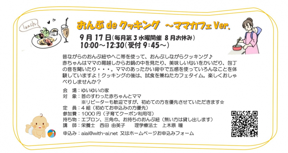 昔ながらのおんぶ紐やへこ帯を使って、おんぶしながらクッキング♪