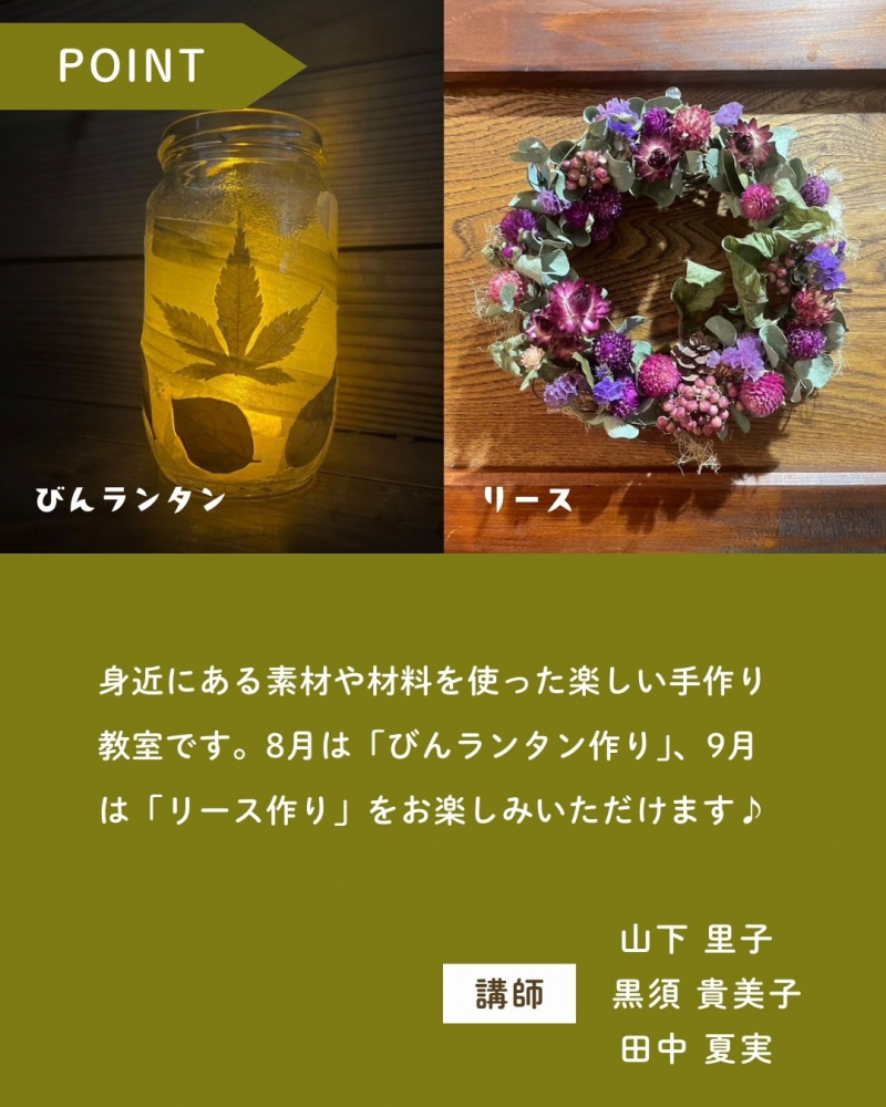 8月のテーマは「びんランタン作り」🌙 びんに、季節の押し葉・押し花を使ってデコレーション🍁 世界に一つだけの、オリジナルランタンを作りましょう♪