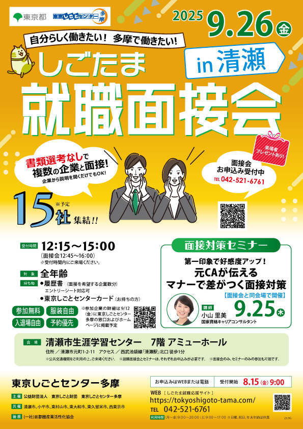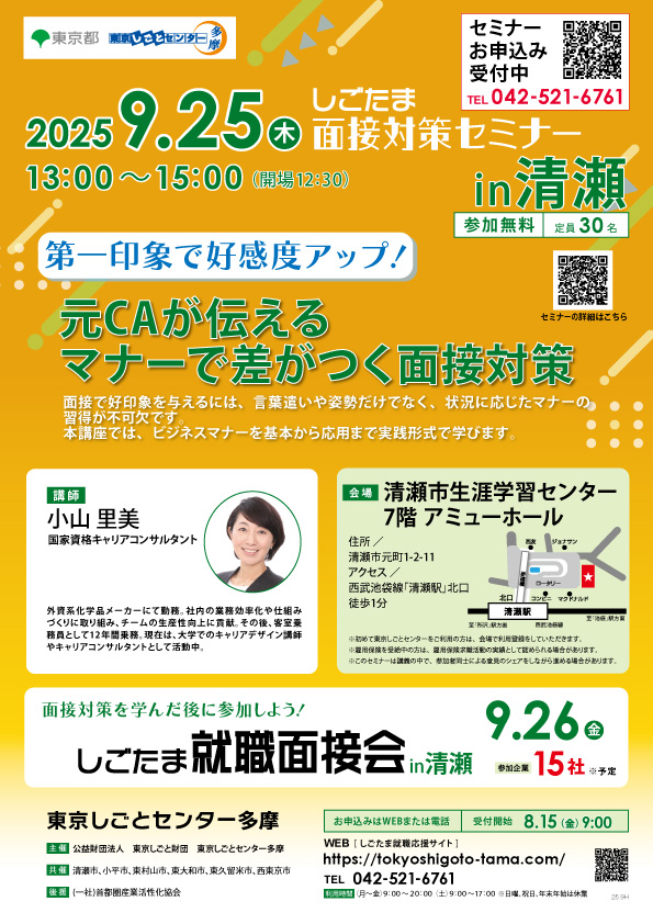 ③来所 東京しごとセンター多摩の担当アドバイザーや受付に申し込み希望とお伝えください。