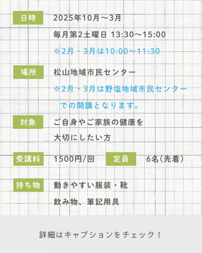 【松山地域市民センター講座情報】「末永く元気に暮らすための健幸習慣」ご自身やご家族の健康を大切にしたい方必見!🍀👀
