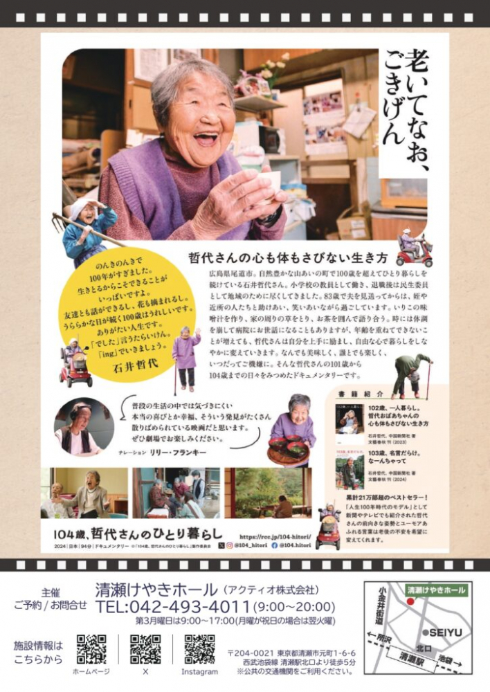 -人生をあじわいつくす- 映画「104歳、哲代さんのひとり暮らし」を大ホールで上映します。